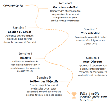 Ce programme de préparation mentale de 6 semaines est conçu pour t'aider à développer les compétences mentales essentielles qui feront la différence dans ta performance cette saison.