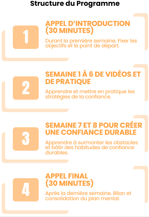 Ce programme a été conçu pour donner aux athlètes des outils concrets afin de bâtir une confiance dans leur sport.